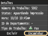 Contanto que o recurso de Recepção na memória não seja desativado, os documentos na memória não são excluídos, mesmo depois de serem reencaminhados; os mesmos documentos podem ser reencaminhados diversas vezes.