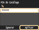 Se um PIN tiver sido definido para o Catálogo de endereços, a tela <PIN do Catálogo> aparecerá durante a exportação. Digite o PIN do Catálogo de endereços e toque em <Aplicar>. Toque em <Ignorar> para cancelar a exportação dos dados do Catálogo de endereços.