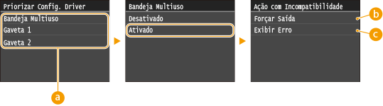 Se as configurações do driver de impressão não correspondem ao tamanho e tipo de papel carregado com <Ativado> selecionado, uma obstrução de papel ou erro de impressão podem ocorrer.