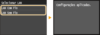 Toque em <LAN Com Fio> ou <LAN Sem Fio>.