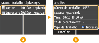 ![]() <Status Trabalho Cópia/Impr.>Exibe uma lista de documentos que estão sendo processados, copiados ou aguardando para serem processados.