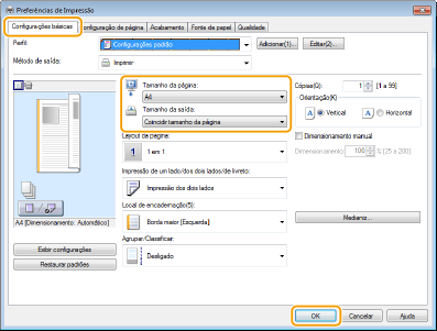 Selecione o tamanho do papel em [Tamanho da saída]
