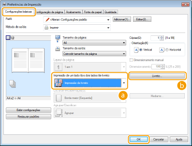 Clique em [Livreto] para especificar as configurações detalhadas conforme necessário