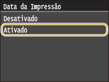 Se você tocar em <Ativado>, poderá imprimir a data de modificação do arquivo abaixo de cada imagem.