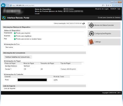 Você pode executar todas as operações e configurações da Interface Remota. Se uma ID de Gerente do Sistema é especificada, digite a ID apropriada em [ID do Gerente do Sistema] e o PIN apropriado em [PIN do Gerente do Sistema].