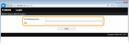 Insira a ID adequada em [ID de Departamento] e o PIN em [PIN].