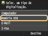 Os dados digitalizados são salvos no dispositivo de memória USB.