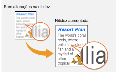 Você pode ajustar a nitidez da imagem. Aumente a nitidez para dar mais nitidez a linhas e textos borrados, ou diminua a nitidez para melhorar a aparência de fotos de revistas.