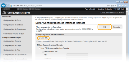 Clique em [Configurações de Segurança]  [Configurações de Interface Remota].