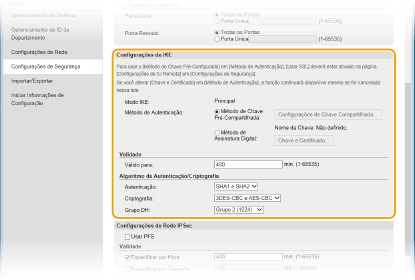 Especifique as configurações [Válido para] e [Autenticação]/[Criptografia]/[Grupo DH].