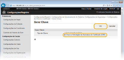 Selecione [Chave e Solicitação de Assinatura de Certificado (CSR)] e clique em [OK].