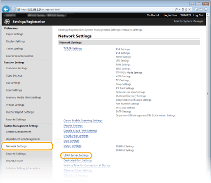 If an LDAP server is implemented in the network, you can search the server for fax numbers or e-mail addresses, and then specify them as destinations or register them in the Address Book. Note also that if send function authentication (LDAP Server Authentication) is enabled, you must register the server used for authentication. You can register a maximum of five LDAP servers each for searching and for authentication to the machine. Register LDAP servers via the Remote UI.