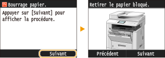 <Réglages papier>Ce bouton permet également de définir le format et le type du papier figurant dans la cassette à papier et le bac multifonctions. Spécification du format et du type de papier
