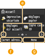 <Réglages écr accueil>Permet de changer l'ordre d'affichage des boutons de l'écran Accueil. Personnalisation de l'écran Accueil