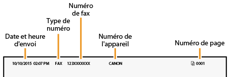 Enregistrez le numéro de fax et le nom d'émetteur de votre appareil. Ces renseignements sont imprimés en haut de chaque page envoyée par l'appareil.
