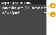 Sélectionnez <Activé> pour imprimer séparément les rapports sur les documents envoyés et reçus ou sélectionnez <Désactivé> si vous préférez imprimer les deux rapports sur la même feuille.