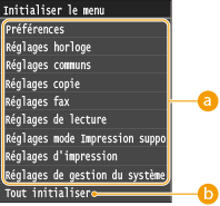 <Réglages réseau> <Initialiser réglages réseau> <Oui> Redémarrez l'appareil |