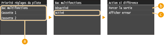 Si les paramètres du pilote d'imprimante ne correspondent pas au format et au type du papier chargé alors que <Activé> est sélectionné, un bourrage papier ou une erreur d'impression peut survenir.