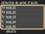 Appuyez sur <Détails> et sélectionnez le routeur local sans fil. Pour revenir à l'écran d'origine, appuyez deux fois sur <Fermer>, puis sur