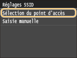 Si la connexion sans fil est configurée en sélectionnant un routeur sans fil, la méthode d'authentification WEP est réglée sur <Open System> ou la méthode de cryptage WPA/WPA2 sur <Auto>(AES-CCMP ou TKIP). Si vous voulez sélectionner <Clé partagée> en guise d'authentification WEP ou <AES-CCMP> pour le cryptage WPA/WPA2, vous devez configurer la connexion à l'aide de la méthode de cryptage manuelle ( Configuration de la connexion par la définition des réglages détaillés).