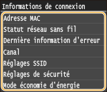 <Infos. Connex.>, puis sélectionnez le paramètre à afficher.