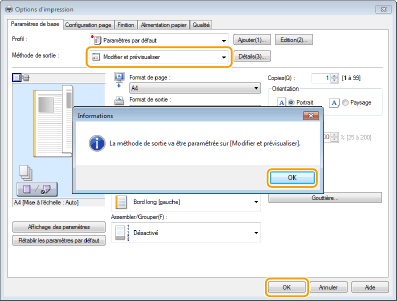 Sélectionnez [Modifier et prévisualiser], dans [Méthode de sortie].