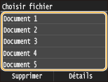 Si les documents sécurisés de deux ou plusieurs utilisateurs sont placés en mémoire, l'écran <Choisir utilisateur> s'affiche avant l'écran <Choisir fichier>. Sélectionnez votre nom d'utilisateur.