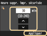 Indiquez le laps de temps pendant lequel l'appareil conserve les documents sécurisés et appuyez sur <Appliquer>.