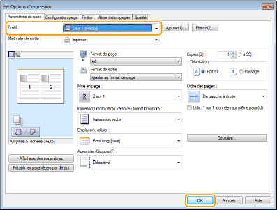 Sélectionnez le profil adapté à vos besoins, puis cliquez sur [OK].