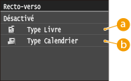 ![]() <Recto-verso> n'est pas compatible avec certains types et formats de papier. Papier