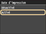 Si vous appuyez sur <Activé>, vous pouvez imprimer la date de modification du fichier en dessous de chaque image.