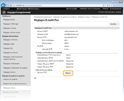 Cliquez sur [Effacer] dans [Vider boîte aux lettres].