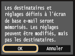 Il est impossible de modifier des destinataires une fois que les paramètres ont été enregistrés. Pour modifier un destinataire, supprimez les paramètres, puis enregistrez-les à nouveau.