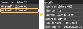 Si <Afficher le journal des tâches> est défini sur <Désactivé>, vous n'êtes pas en mesure d'examiner les journaux des documents envoyés. Afficher le journal des tâches