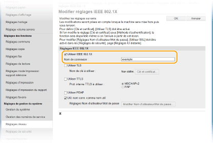 Cochez la case [Utiliser IEEE 802.1X], saisissez le nom de connexion dans la zone de texte [Nom de connexion], puis définissez les réglages requis.