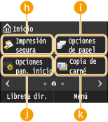 Botones de acceso directoAbra las "Configuraciones favoritas" registradas para copia, fax y lectura. Adición de botones a la pantalla Inicio