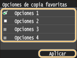 Marque la casilla de verificación para todas las opciones que desea mostrar en la pantalla Inicio y pulse <Aplicar>.