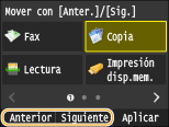 Pulsación larga <Anterior>/<Siguiente> para mover el botón de forma continua.