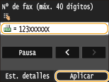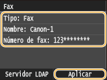 <Opciones de fax>. No obstante, los ajustes realizados desde <Libreta dir.> se habilitarán para las opciones detalladas de destinos registrados en la libreta de direcciones. |
