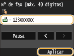 Pulse <Pausa> para introducir una pausa al final del número de fax según sea necesario.