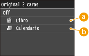 <Fax>  <Original 2 caras> Seleccione <Tipo libro> o <Tipo calendario>