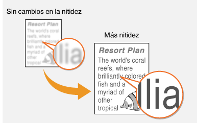 Puede ajustar la nitidez de la imagen. Aumente la nitidez para que las líneas y los textos borrosos se vean con mayor claridad o disminúyala para mejorar el aspecto de las fotos de revistas.