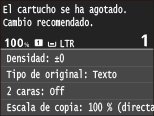 Si el equipo recibe un fax, o se configura la impresión automática de informes, los faxes e informes recibidos se almacenarán en el equipo de forma que no aparezcan difuminados una vez impresos. Para seguir imprimiendo aunque el cartucho de tóner tenga poco tóner, establezca <Seguir imprimiendo cuando la cantidad en cartucho es baja> en <On>. Seguir imprimiendo cuando la cantidad en cartucho es baja