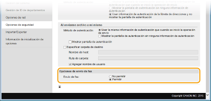 Haga clic en [Opciones de seguridad]  [Opciones de autenticación para función de envío].