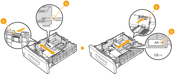 Ajuste as posições das guias de papel para o tamanho de papel desejado.