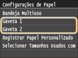 <Gaveta 2> é exibido somente quando a gaveta de papel opcional (gaveta 2) está instalada.