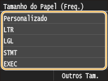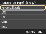 Se a tela mostrada acima não for exibida quando o papel for carregadoSe você carrega sempre o mesmo papel na bandeja multiuso, você pode ignorar as operações de configuração de papel registrando o tamanho e o tipo de papel como a configuração padrão. Quando a configuração padrão é registrada, entretanto, a tela mostrada acima não é exibida. Para visualizar a tela, selecione <Especificar ao Colocar Papel> (Registrando as configurações de papel padrão para a bandeja multiuso).