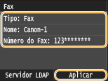 <Configurações de Fax>. No entanto, as configurações feitas no <Catálogo> são ativadas para as configurações detalhadas dos destinatários registrados no Catálogo de endereços. |