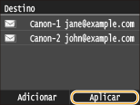 Repita as etapas 7 a 9 até que tenha registrado todos os destinos desejados e depois toque em <Aplicar>.