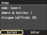 Depois de registrar os destinos em um grupo, você pode alterar o conteúdo da informação registrada. Por exemplo, você pode alterar o nome do grupo ou o número de discagem codificada, adicionar/remover destinos, etc.